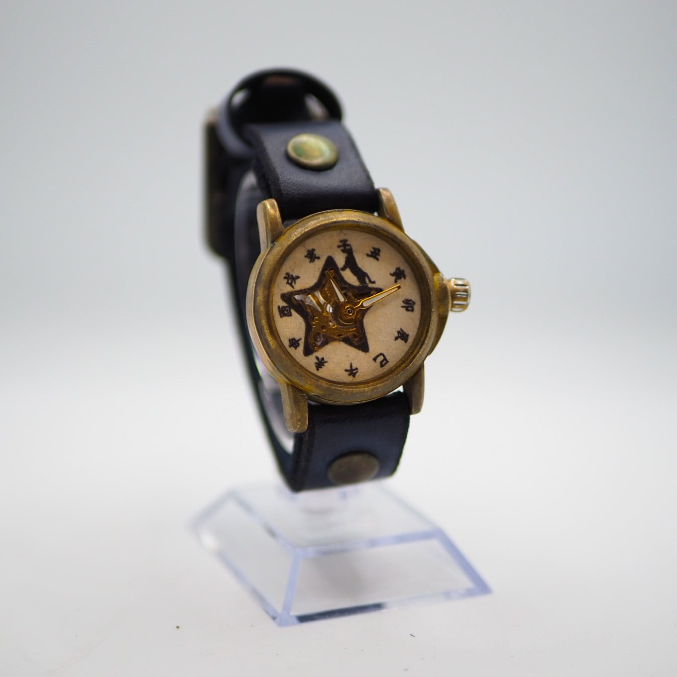 星に焼き目を入れてその穴から時計内部が見える仕組みに仕上げました。