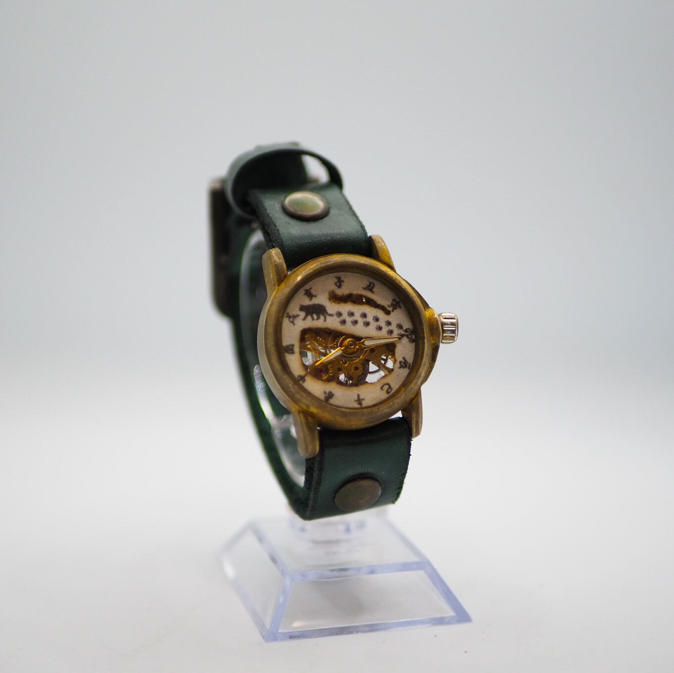 足跡以外に焼き目を入れてその穴から時計内部が見える仕組みに仕上げました。